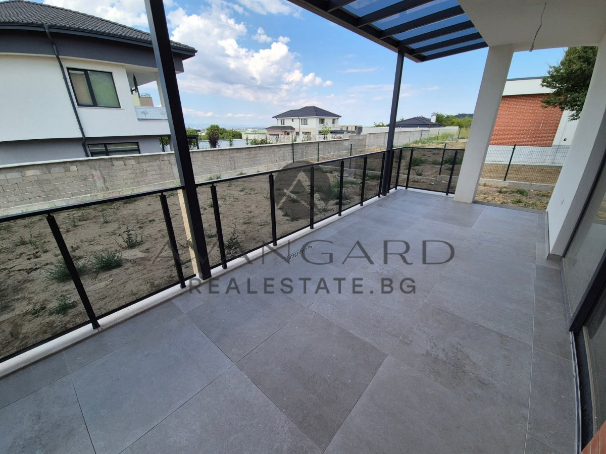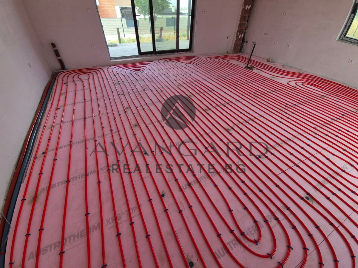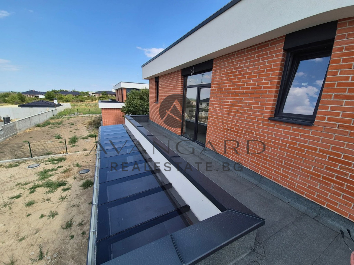 a separate two -storey house in front of Act16 / panoramic view We offer you to buy a wonderful two -storey house in a complex of private houses in the village of Markovo. It consists of: first floor - a spacious living room with a kitchenette, a bedroom, a bathroom with toilet, a washing room, a warehouse, a corridor, a large veranda and a garage with a warm connection. Second floor - three bedrooms, each with a private bathroom with toilet and closet, corridor and two terraces. The built -up area is 260sq.m. The property has underfloor heating with a heat pump, cooling convectors, an irrigation system built, three-phase current for charging an electric car and a 7-chamber joinery with triple glazing. The house is available on putty and putty, turnkey installation, plumbing on the plug, which allows you to furnish to your taste and preference. The location is preferred, quiet and peaceful (10 minutes from Plovdiv), and at the same time near everything you need. Parking is convenient due to the presence of both in the garage and parking spaces. Contact: email: info@avangardrealestate.bg; For more current offers: www.avangardrealestate.bg