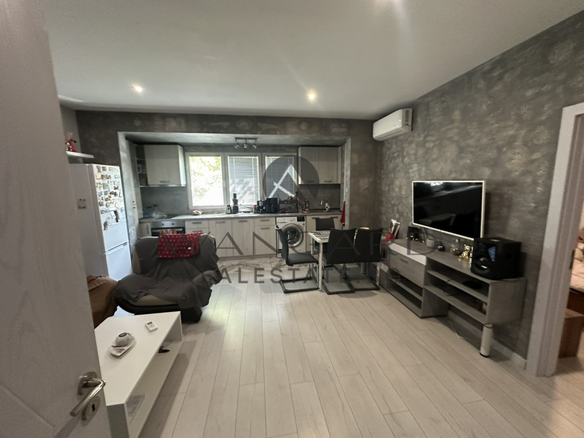 REAL SQUARE AREA! SOUTHERN EXPOSURE !! READY TENANTS !! We offer you to buy a three-room apartment converted into a four-room apartment, consisting of a HALL WITH KITCHEN BOX AND DINING ROOM, THREE LARGE BEDROOMS, BATHROOM WITH TOILET, SEPARATE TOILET, CORRIDOR AND ADJACENT BASEMENT ROOM. The apartment that we offer you to buy is sold fully furnished and after total renovation, with replaced El. and plumbing installation, as well as installed water filters throughout the apartment. The property is the perfect choice, both for your new home and as an investment. It is located in a quiet and communicative location, close to kindergartens, schools, shops, bus stops, parks, etc. The block has a large and free parking lot.